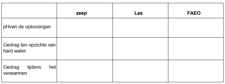 De oppervlakte-actieve eigenschappen van zeep 1.Onderzoeksvraag Hoe worden oppervlakte-actieve eigenschappen door zeep beïnvloed? 2.Voorbereiding Materialen 6 reageerbuizen reageerbuisrek reageerbuishouder Bunsenbrander 3 druppelpipetten 3 glazen staven 3...