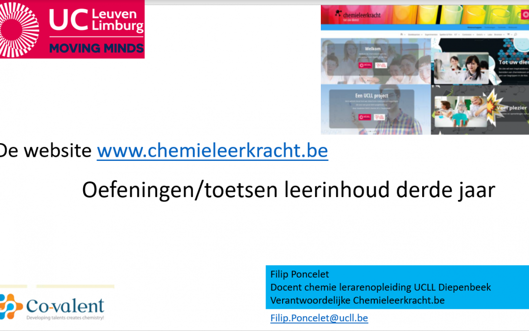 Videofragment: Oefeningen leerinhoud derde jaar chemie In deze webinar geven we verschillende bronnen aan waar oefeningen rond de leerinhoud van het derde jaar chemie is terug te vinden. Je vindt uitgelegde oefeningen, verschillende vraagvormen, open en gesloten...