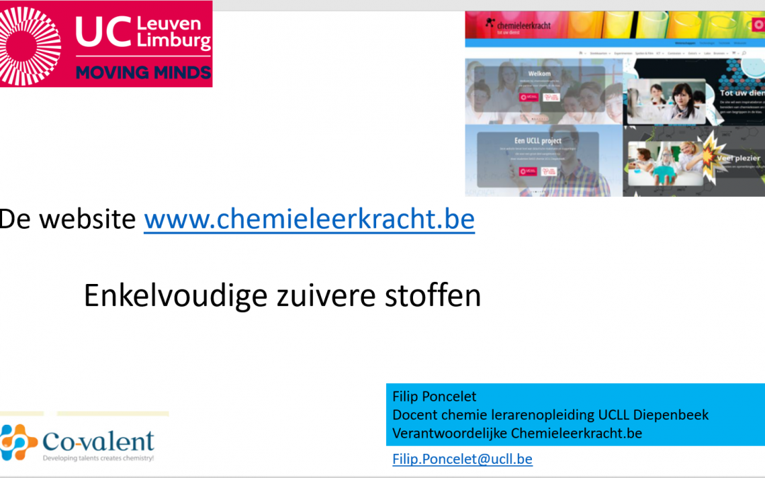 Videofragment: Enkelvoudige stoffen In de webinar vind je tools om enkelvoudige stoffen te bespreken in de klas. Dit kan via toepassingen op basis van video’s, via experimenten. We verzamelden cartoons, roostervoorstellingen, elektronenconfiguraties van de...