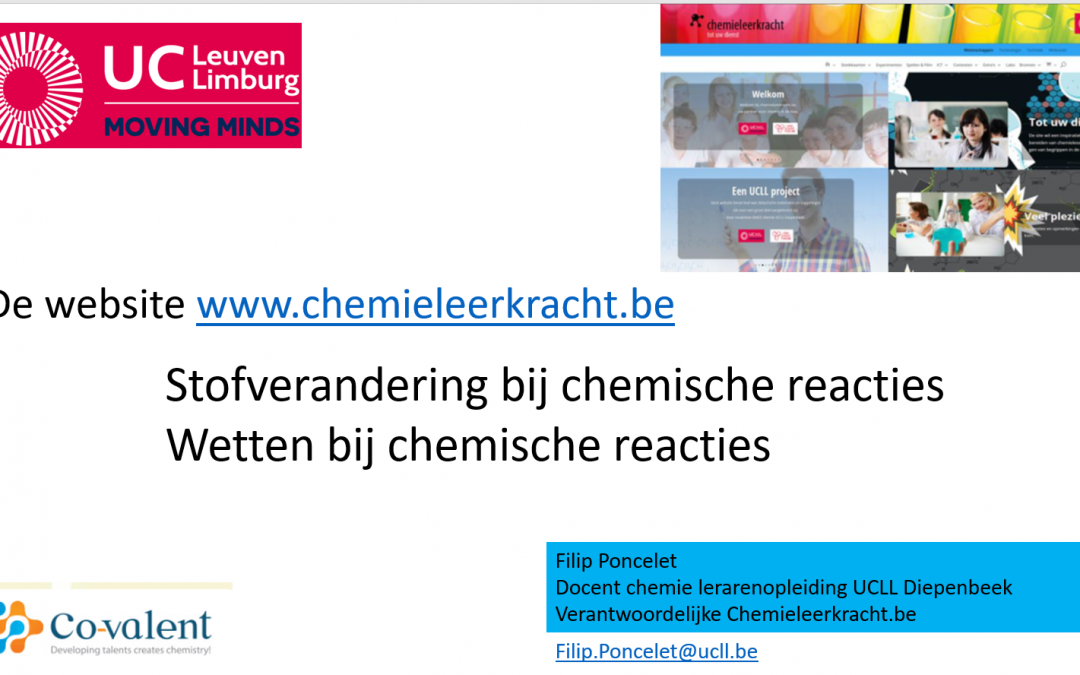 Videofragment: Stofveranderingen In de webinar vind je tools om de stofveranderingen bij chemische reacties te bespreken. Ook tools voor de wetten bij chemische reacties kun je hier terugvinden. Varieer in de klas met bookwidgets, animaties, proefjes, soorten...
